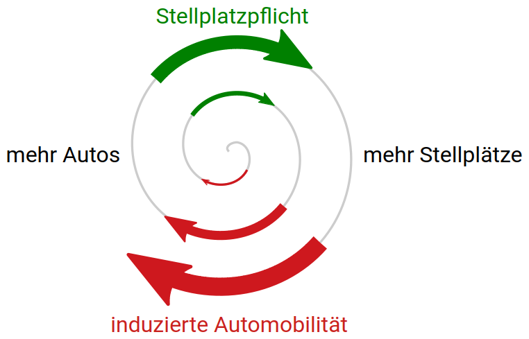 Stellplatzverordnungen fördern die Kfz-Nutzung in einem sich selbst verstärkenden Prozess (Mitkopplung)