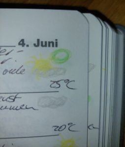 Grüner Punkt im Tagebuch für autofreien Tag